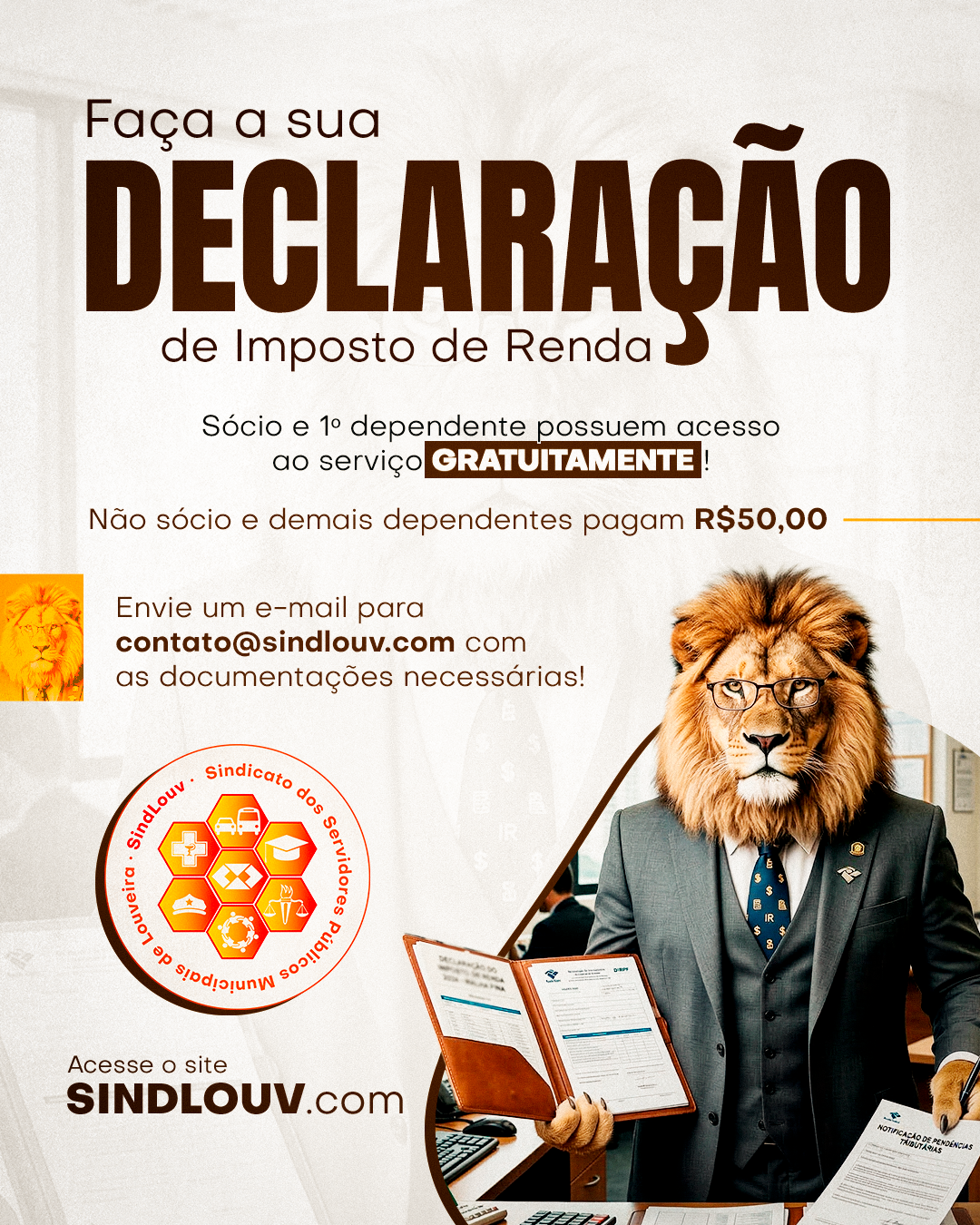 Nosso contador especializado cuidará de todos os detalhes da declaração de cada companheiro(a). Basta enviar toda a documentação necessária para o e-mail contato@sindlouv.com.