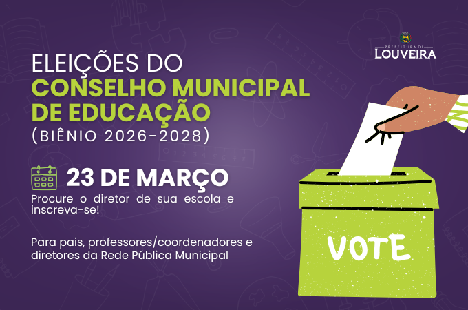 O SINDLOUV informa aos Servidores de Louveira que a Prefeitura, por meio da Secretaria Municipal de Educação, abriu inscrições para as eleições do Conselho Municipal de Educação, referentes ao biênio 2026/2028. Os companheiros interessados em participar do processo eleitoral devem se inscrever até o dia 17 de março. Para isso, procurare o gestor da unidade escolar com a qual possui vínculo, seja a escola onde atua ou os seus filhos estão matriculados.