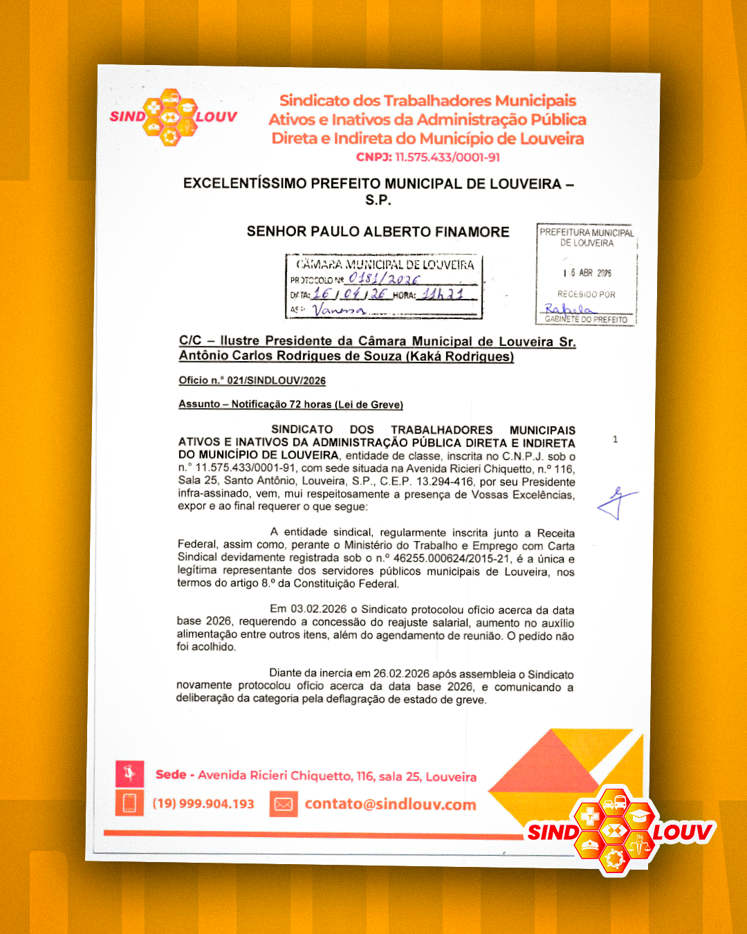 “A Prefeitura de Louveira tem dinheiro em caixa, está abaixo do limite de gastos com Servidores e fechou o ano com milhões de sobra. Se não valoriza os trabalhadores, não é por falta de recurso, é por falta de prioridade!”, arremata nosso presidente Eli.