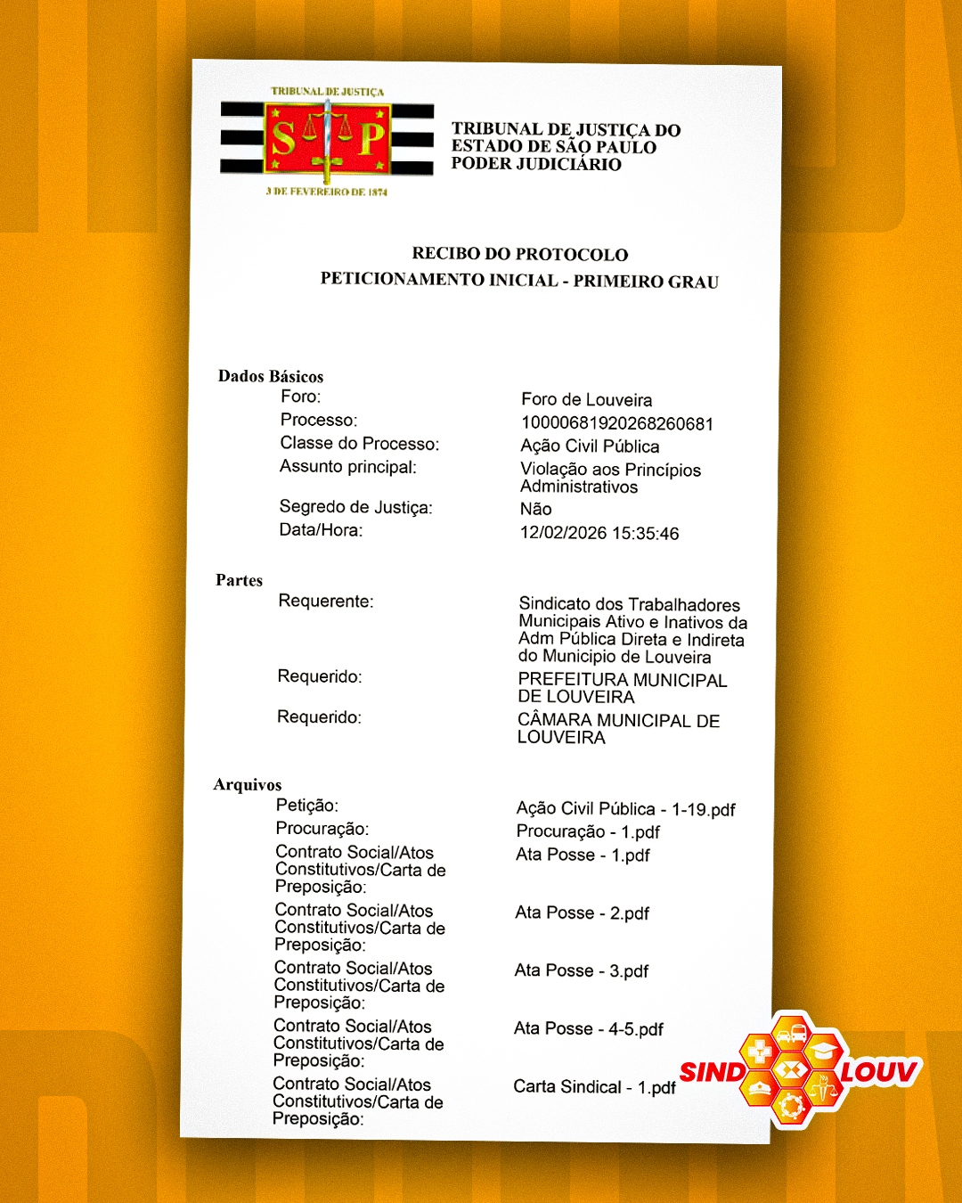 Além da inconsistência técnica, o Sindlouv destaca no documento o vício formal do processo legislativo. O Parecer Jurídico da própria Câmara Municipal apontou ausência de justificativa técnica robusta e risco de inconstitucionalidade material, o que, em tese, deveria ter obstado a tramitação do projeto. Ainda assim, a proposta foi aprovada sem ressalvas ou emendas. A entidade requer, em caráter liminar, a suspensão dos efeitos da nova lei e, no mérito, a declaração incidental de inconstitucionalidade da majoração, além de oficiar o Tribunal de Contas do Estado e o Ministério Público para acompanhamento da matéria.